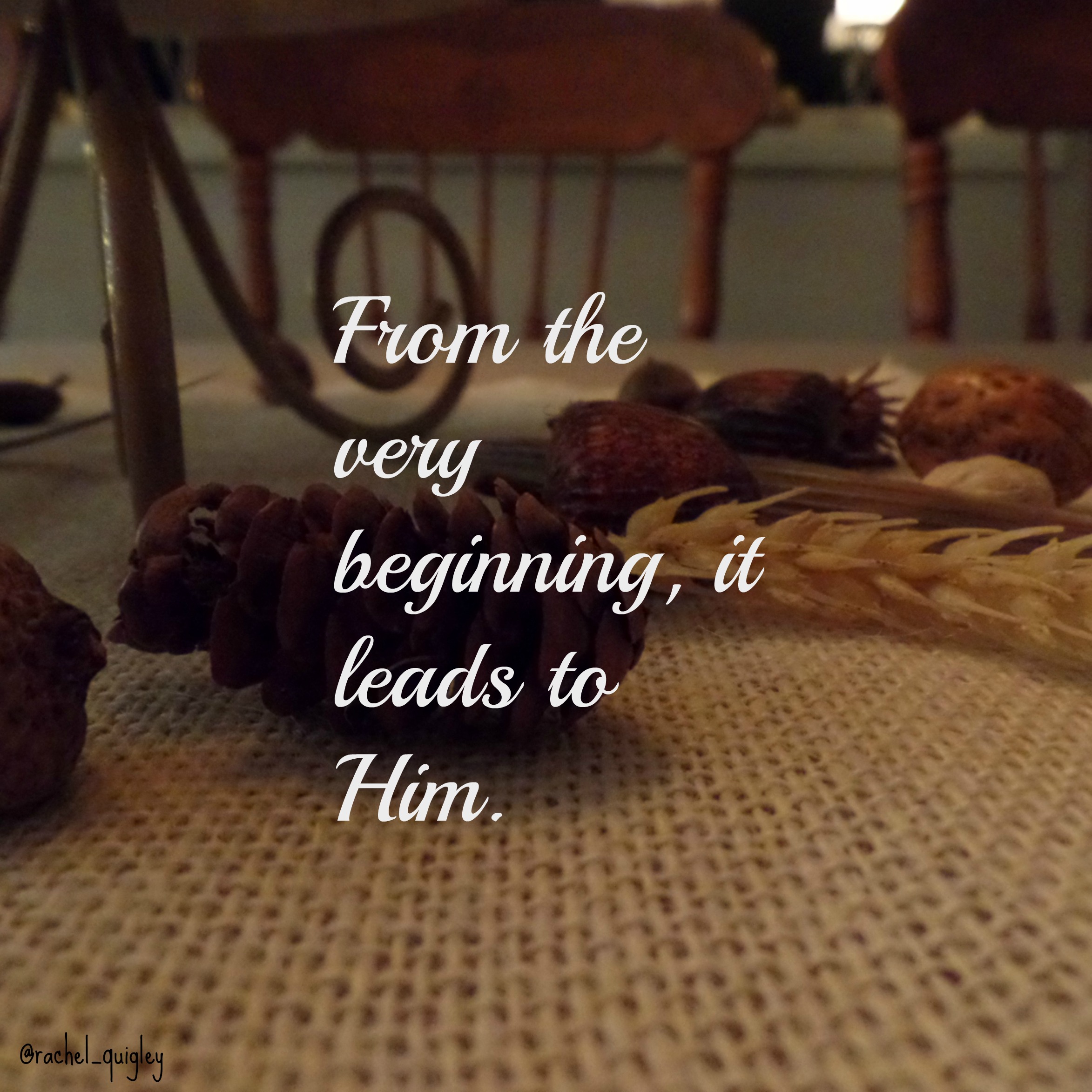 From the very beginning, it leads to Him. His story is played out through the pages of time. God is woven in and out of the tapestry of people’s lives and events. He is continually leading people to Him through their time.