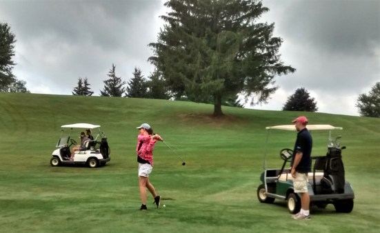 For some fun this summer, we took on the family outing idea of a round of 9 holes. This was quite a feat for Dave, who enjoys golfing but now had 5 rookies on the green with him. Needless to say, after 4 ½ hours we finished our 9 holes with a few balls lost in the trees, drink, and who knows where! Good thing we rented carts or we still might be out there!