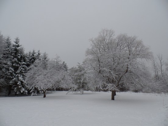 Last night I went to bed thinking, “Tomorrow is a new day and maybe we’ll see the sun!” Yet this morning I woke to cloud cover and fresh fallen snow.